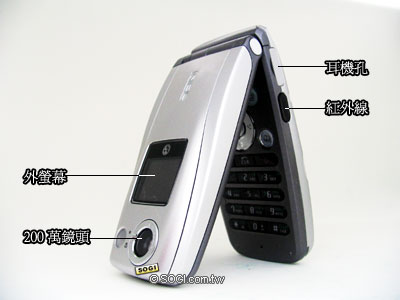 NEC N840 在相機鏡頭的旁邊,設計了一個取名為外殼閃光的大指示燈,用於來電、簡訊、MMS、通話中的不同環境,都可以設定其專屬的外殼炫光顏色,內建的十幾種顏色相信已經能滿足一般的民眾!!