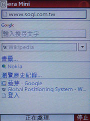 發表會現場,記者簡單的拍攝 Opera Mini Browser 基本功能,可支援 Flash lite 2.0。這是一個非常好用的網頁瀏覽器,如左上圖,連接上網時,只要在螢幕網頁上方輸入網址,即可直接進入欲連網站,更方便的是,它還有「紀錄網頁」的功能,也就是說,Nokia 6300 可紀錄先前連接過的網站,可有效的省略下次上該網站時,輸入網址的寶貴時間。另外,超長 300 小時的待機時間也是 Nokia 6300 另一個值得稱許的功能之一。