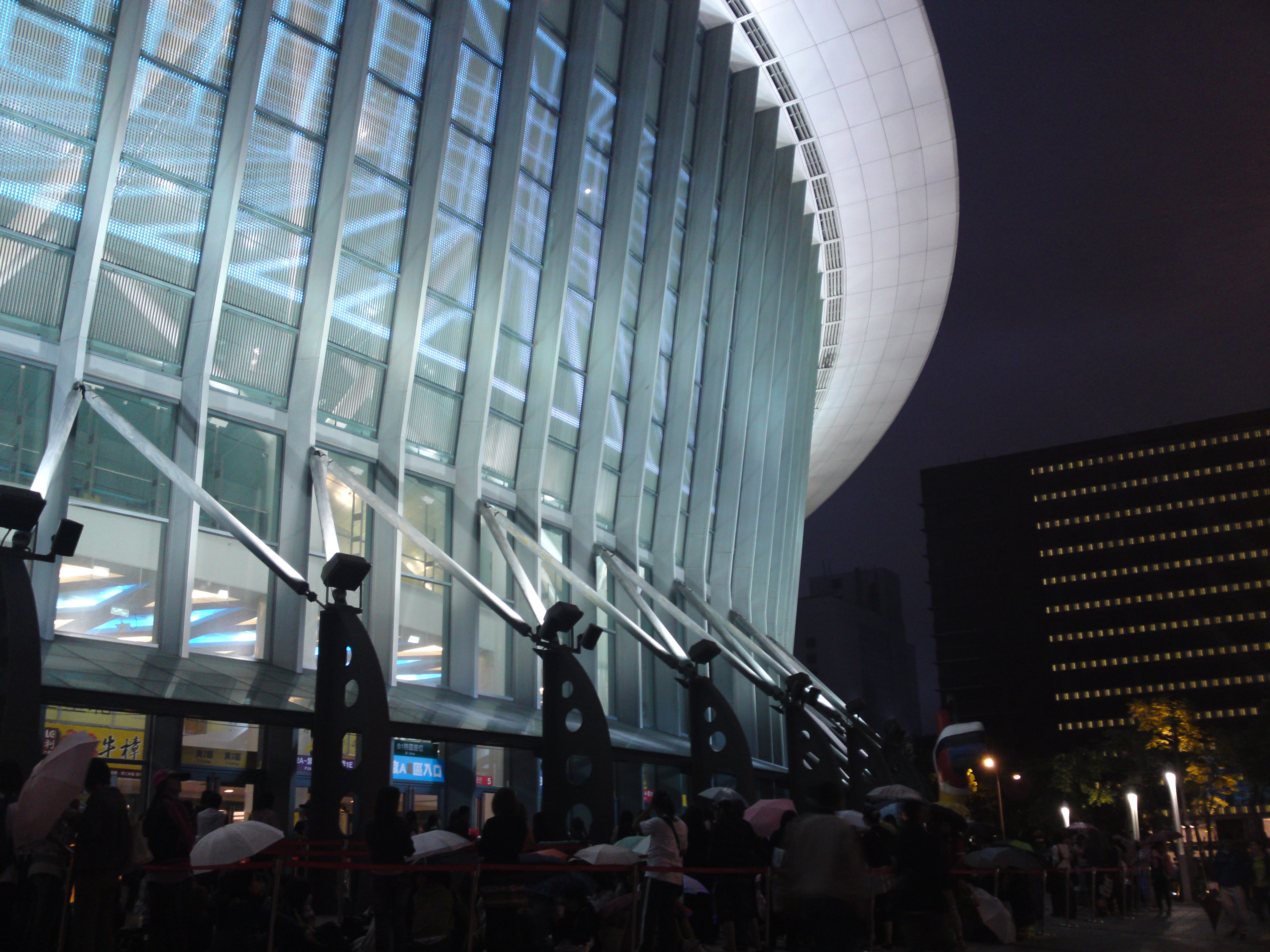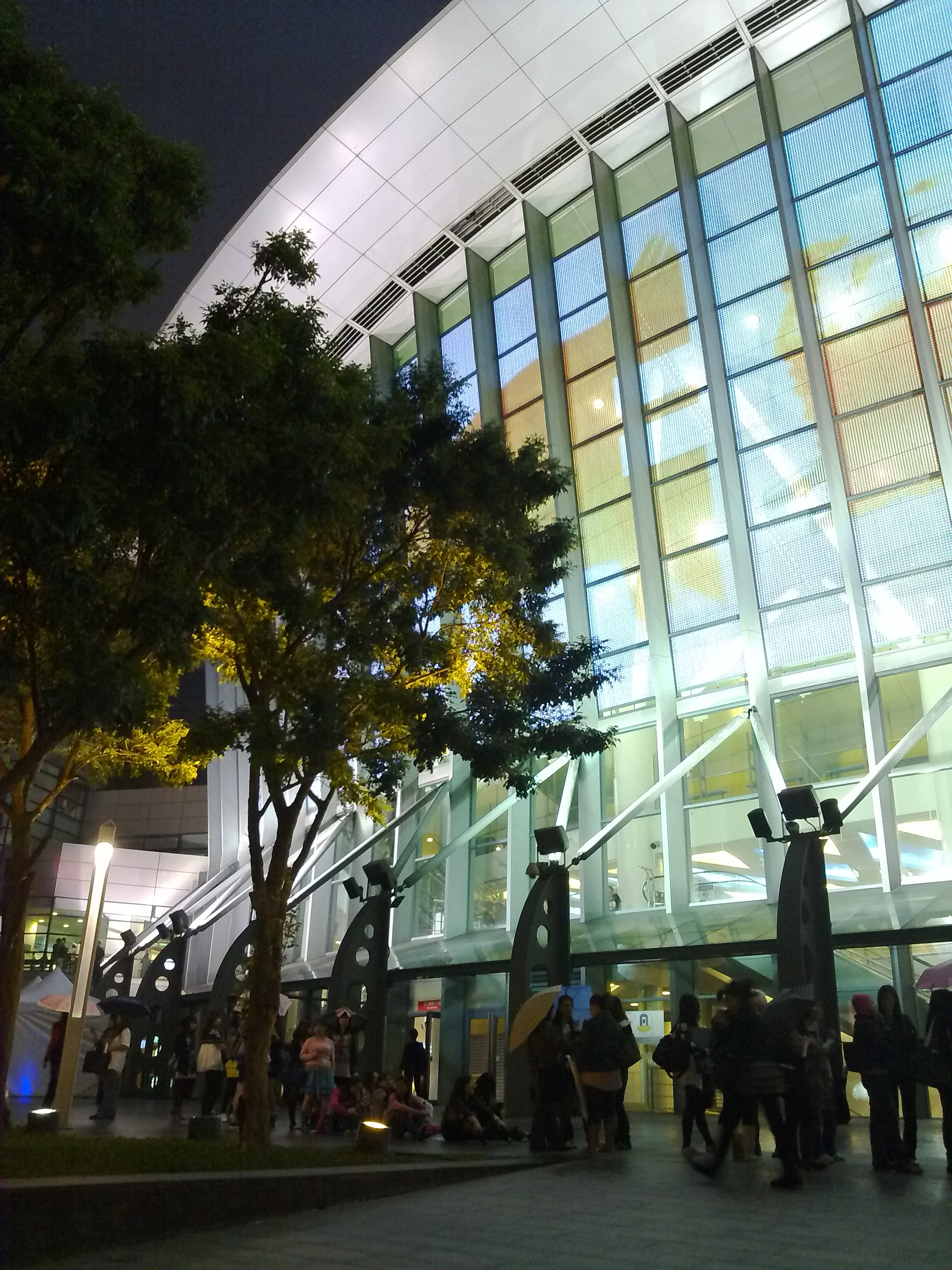 ▲以「夜景模式」拍攝小巨蛋,Satio 的線條很細緻,蔡斯代表 N86 不慎色偏了...。(巧遇陶喆的演唱會,大排長龍的粉絲團)