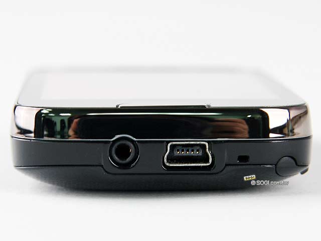▲充電、連接電腦與耳機最重要的 USB 連接埠和耳機孔,OKWAP i720 則將其安排在機底位置。可惜 i720 並非配備市售常見的 3.5 mm 標準耳機孔,為了避免更換耳機傷了荷包,還是建議用戶謹慎使用為妙。