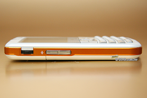 除了 QWERTY 按鍵可供操作之外,在機身左側上方,ASUS M530w 亦提供一個三向滾輪鍵,更方便使用者進行單手操控,此外,在機身左側還可發現語音命令鍵 ( 需長按,約 2 秒 ) 與音量調整鍵。