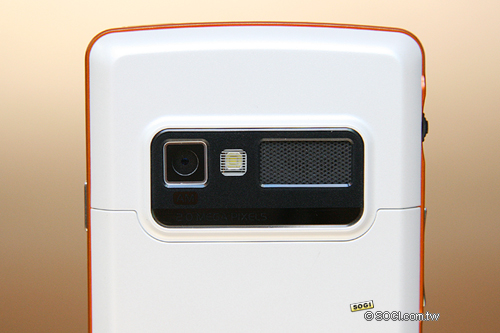 在機身背面,ASUS M530w 內建 200 萬畫素與 LED 閃光燈,雖然相機並不支援自動對焦功能,不過卻具備近拍、場景設定、白平衡等功能,且該相機也具備動態影片錄製功能,另外,在相機鏡頭旁邊則是其喇叭孔。