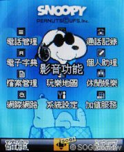 GIGABYTE Snoopy 手機不僅擁有可愛的 Snoopy 彩殼設計,在內建的功能列表或應用程式裡,也布滿了許多與 Snoopy 相關的圖案或遊戲。使用者不僅可以選用手機內建的數款可愛 Snoopy 圖片當桌布,在各個功能列表選項上,也設計了許多可愛的 Snoopy 大頭。