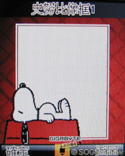 GIGABYTE Snoopy 手機內建數款可愛 Snoopy 圖片,使用者可以經由 MMS 傳送給親朋好友,也可以任意將其設定為桌布。