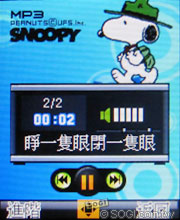 Snoopy 手機內建三款以 Snoopy 為遊戲主角的 Java 遊戲,以 Snoopy 開飛機這款遊戲為例,遊戲的操作方法採用之前 g-X5 正版手機內建的拾八辣遊戲一樣,使用者只要輕輕晃動手機,便能隨心所欲操控遊戲。