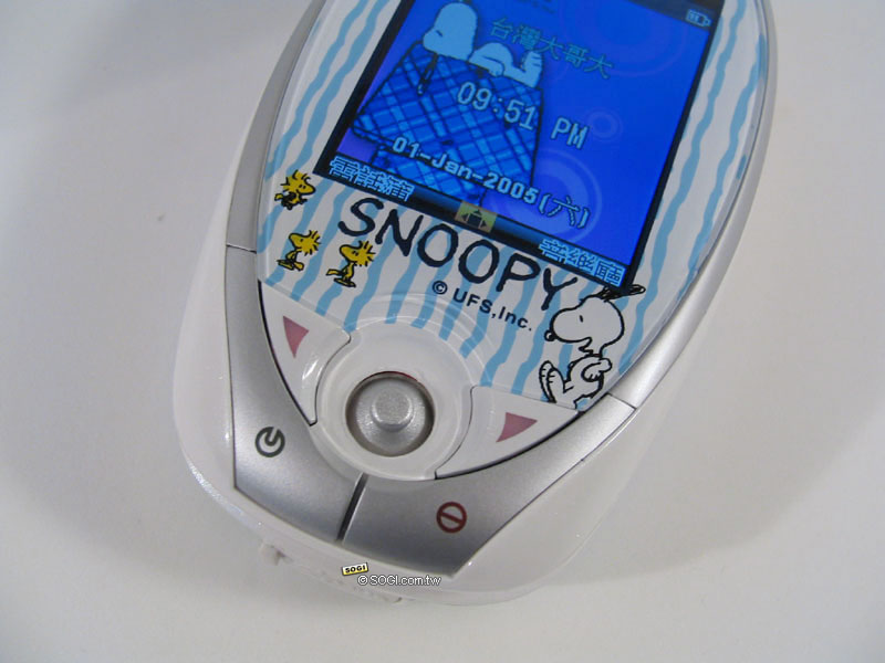 在手機的背面電池蓋上,此次 GIGYBYTE 特地把 Snoopy 最愛在屋頂上睡覺的經典畫面呈現出來,非常可愛!