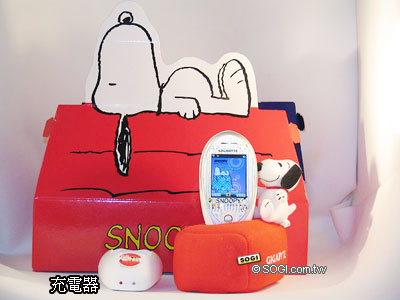 在配件方面,除了基本的 Snoopy 手機吊飾跟吊繩之外,消費者還可以拿到可愛的 Snoopy 紀念提袋、Snoopy 充電器跟 Snoopy 手機座,這麼多 Snoopy 相關的配件,可說是非常的物超所值。