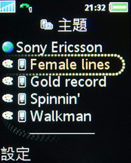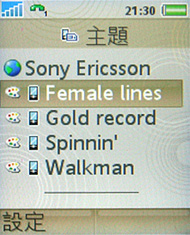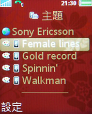 目錄維持 Sony Ericsson 一貫的 12 宮格選單,內建主題當中,「Female lines」、「Spinnin’」也特別與經典黑與薔薇紅兩色互相搭配。