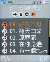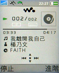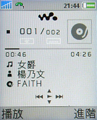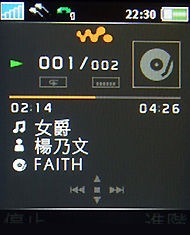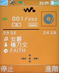 相較於 Walkman Player 2.0 多元化的音樂管理功能,MP3 播放介面非常中規中矩,三種底色供選擇,沒有太大的變化、清楚明白地顯示歌名、歌手以及專輯名稱,讓人一目瞭然。