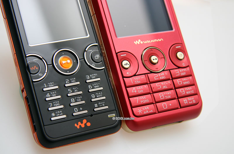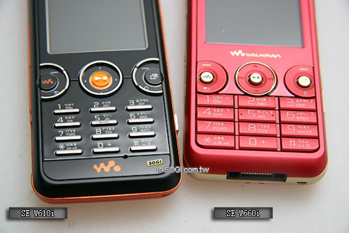 由圖可以發現,SE W660i 以及 W610i 兩款直立式手機的另一項差異,在於手機的數字按鍵和方向鍵,W610i 的數字按鍵採用長條米粒狀的設計,英文數字與立體設計的按鍵分開,印在機座表面上;而 W660i 則是改為一般普通的獨立鍵盤座,注音和數字就是直接印在各個按鍵上。順道一提, W610i 的五方向導航按鍵和左右兩側的功能導引鍵,配合底座的米粒數字鍵,同樣採用條狀立體設計,雖然可能是造型考量,也確實有一致的美感,但是手指頭的施力點反而不好拿捏,端看消費者的使用習慣個人喜好問題。