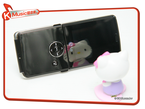 LG KM710 將會是目前 KM 系列手機當中最具獨特創意造型的一款音樂手機,1.1 吋次螢幕的設計不僅可直接觸碰選擇音樂播放或暫停,次螢幕周圍的飛梭滾盤又可轉動充當音量大小轉盤、按下左右兩端還可立即進行前後曲播放,再加上操作時的燈光旋轉效果,KM710 不僅有得聽、又有得玩與看,確實大大地將音樂手機延伸到最高境界。