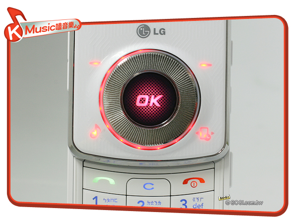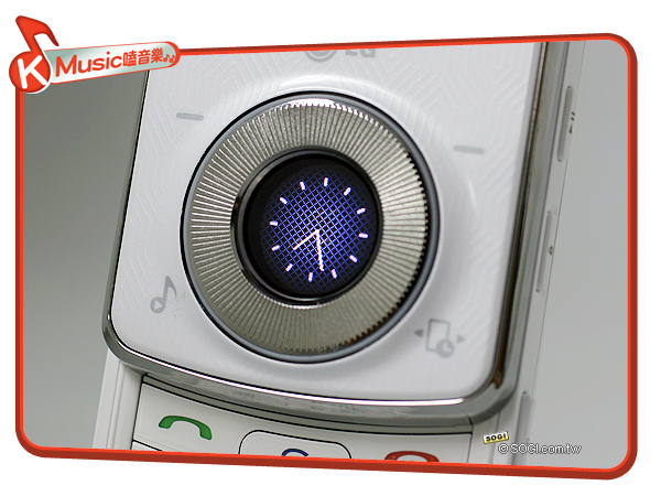 LG KM710 飛梭轉盤與 1.1 吋次觸碰螢幕還具備另一種特性,音樂播放時閃藍光,而一般功能操作時則閃紅光,藍紅兩色明顯的提醒用戶正在使用操作何種功能。有關操控方式與飛梭轉盤燈光效果,請參考以下實機操作影片。