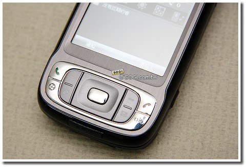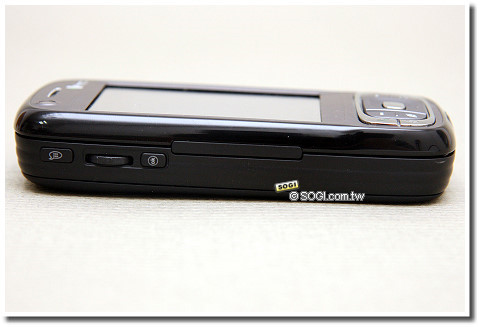 TyTN II 的左側則可看出承襲 CHT 9000 的設計,語音記事/聲控快捷鍵、360 度滾輪與視窗/確認鍵同樣置於機身左側,提供使用者便利的單手操作環境。