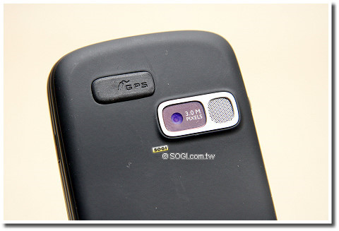 背部較值得一提的,就是 300 萬畫素相機鏡頭與 GPS 外接天線孔,TyTN II 的 300 萬畫素相機支援自動對焦機制,是繼 Dopod U1000 後,HTC 第二款支援 300萬 畫素等級的產品,不過因為定位在商務使用,相機旁並未配有補光燈及自拍鏡輔助,只有將擴音喇叭設置在鏡頭旁。