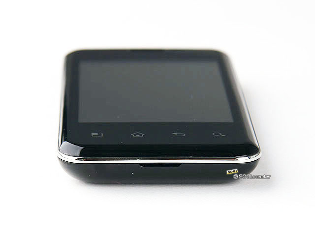 ▲LG Optimus Chic E720 機身右側面配置音量放大 / 縮小鍵,四邊則以鍍鉻飾條修飾機身。