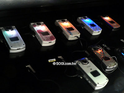 由左至右分別為 D902i (三菱製)、F902i (富士通製)、N902i (NEC 製造)、P902i (Panasonic 製造)、SH902i (Sharp 製)、SO902i (Sony Ericsson 製造)