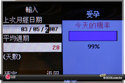 KG200 中也有受孕機率測試功能。