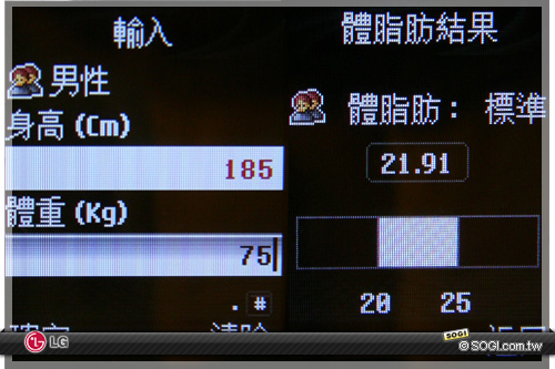 KG200 中具備體脂肪測試功能。