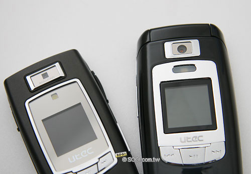 utec 此兩款手機外觀上採用保守的黑銀色,搭配傳統的貝殼機身設計,加入時下多種主流的多媒體功能,百萬畫素相機可拍攝靜、動態的照片和影片,擁有 MP3 快捷按鍵操作,搭配 64 和絃鈴聲,播放鈴聲和音樂的效果算是令人滿意。加上設有 microSD 記憶卡插槽,儲存影音檔案綽綽有餘。直覺性操作介面的設計,使得兩款手機非常容易上手,可惜,底座數字鍵盤設計不良,在按壓上下左右或是確認的手感不佳。