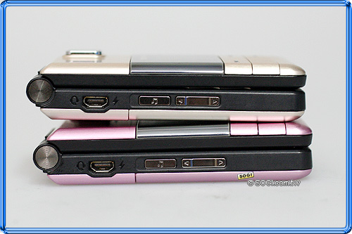 在使用外顯示螢幕下方的免掀蓋音樂播放鍵操作之前,使用者必須先從機身左側音樂播放快捷鍵上直接操作開啟才可,在音樂播放鍵的下方則是音樂音量調整鍵,另外,EF71 還具備 USB 傳輸功能 ( 亦具備藍牙無線傳輸 ),此外,傳輸孔同外是耳機插孔。