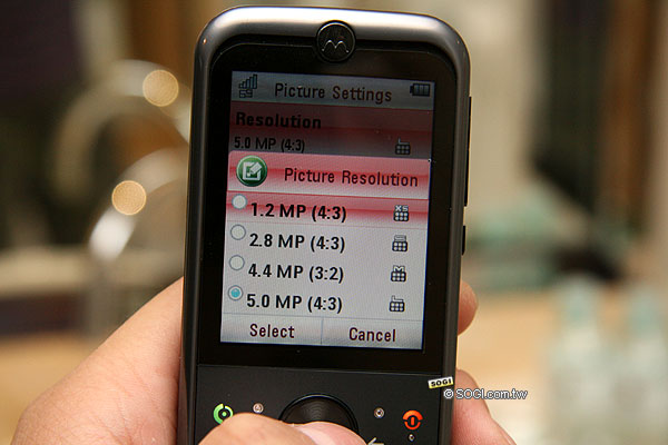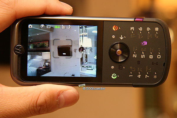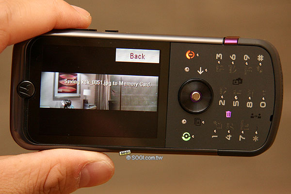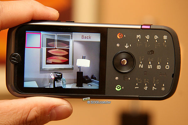 MOTO ZN5 的 2.4 吋 26 萬色 QVGA TFT LCD,可以作為拍照預覽的視窗,而且是全螢幕顯示。透過下圖圖說當中的虛擬觸控鍵,分別為相片瀏覽鍵、互動鍵 (傳MMS、E-Mail、Kodak Gallery 等) 和照片刪除鍵,輪到它出現的時候才會自動亮燈,也許是這樣的關係被稱為虛擬觸控鍵,嚴格來說這種按鍵並不算觸控按鍵。