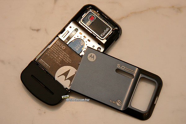 ★ 把背蓋給拆開,是一塊金屬的面板,質感還算相當不賴。只是插入記憶卡仍然必須打開背蓋、取出電池之後才可以,人性化的程度還可以改善。