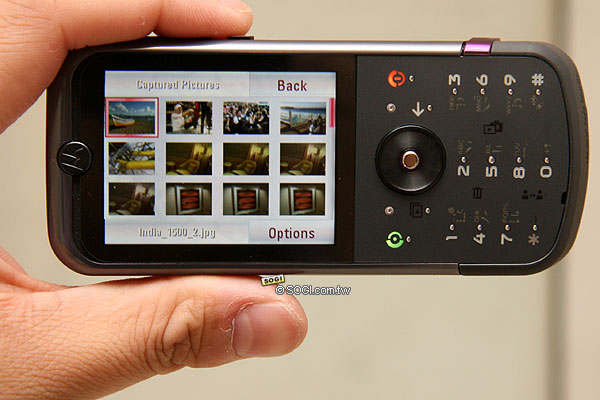 ★ 按下紫色的相片瀏覽鍵,則進入了這個 MOTO 全新的圖片瀏覽介面,除了主要圖片以全螢幕顯示外,下面一牌則是顯示前後對應的照片,一次可以瀏覽 6 張的照片。