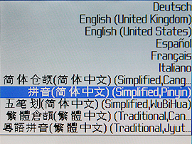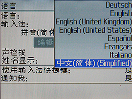 要正式介紹 BlackBerry Curve 8300 的功能之前,SOGI 必須先簡單的解釋一下該款黑莓機的中文化介面與輸入方式, 左上圖是語言介面,Curve 8300 僅提供簡體中文介面,至於在輸入法部分,如右上圖,它雖然提供最常用的拼音,不過卻是簡體版中文,使用者如果要輸入繁體版,則必須會倉頡或是粵語拼音才行。