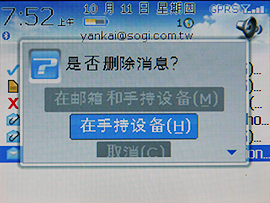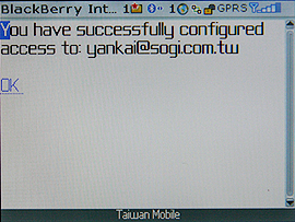 黑莓機最吸引人的功能莫過於 Push Mail 電子郵件收發功能,目前支援多種郵件伺服器,且一次可設定 10 組 E-Mail 帳號,另外,像是一般 Yahoo!、PChome、Gmail 等免費信箱,也都是 BlackBerry 黑莓機所服務支援的對象。在設定上非常簡單,首先是必須開通 GPRS 網路服務。