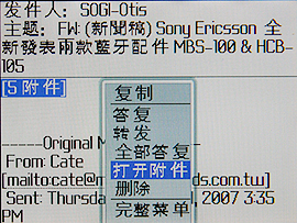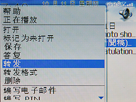 除了收電子信件之外,BlackBerry Curve 8300 亦包含「發」的工作,如上圖,使用者可作到信件轉發的工作,而在這發電子郵件的功能上,除了轉發信件之外,當然也包括撰寫新信發送功能。