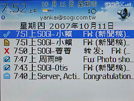 當設定好電子郵件帳號時,如何得知新郵件進來?其實很簡單,可透過主功能畫面上信箱的紅色星星來觀察與得知,也就是說,當有新郵件進來時,主功能選單上的郵件圖示便會出現紅色星星來提醒消費者,收件提醒等執行速度可說是非常即時。