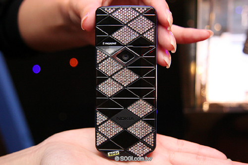 Nokia 7500 Prism 水晶珍藏版全身上下共有 556 顆水晶鑲嵌而成,除了機身正面的五向導航鍵之外,其餘的 555 顆水晶則設計在機身背面。
