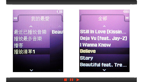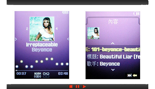 除了可依照最近的播放音樂來搜尋,F308 還自動歸類出播放最多的音樂,讓最常聽的熱門音樂可以迅速找到,提升播放的樂趣。愛好音樂的族群,在不同的時間會有不同喜好的音樂,不妨建立起音樂播放清單,將所有最心愛的音樂納入,重複播放這些個人音樂精選輯。另外,專輯封面的顯示,也是 F308 在介面上的強項,可自行於電腦上編輯專輯封面,讓每首歌曲都有專屬的封面,更接近專業級 MP3 播放器的水準。