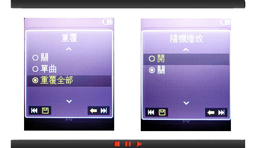 在觸碰式按鍵當中,左、右兩個接觸鍵為選項列表中跳到前後一個功能之用,上接觸鍵可開啟開功能的下一層目錄選單,而下接觸鍵則是返回的功能,可依照圖示輕鬆的了解並操作。在啟動音樂功能的時候,感應區輕輕由左向右滑,可顯示專輯、歌曲名稱和全部歌曲,並顯示最近已播放音樂、播放最多的音樂和播放清單;在感應區上由右向左滑,則是音樂播放功能的設定,如重複播放、隨機播放、3D 音效和音場設定等。同時,在播放音樂的時候,在感應區由上往下滑、或是由下往上滑,則是可以調整音樂播放的音量。了解這些基本的操作方式之後,便可發現獨特的播放系統讓多結構目錄的操作導航更為簡易、靈活。