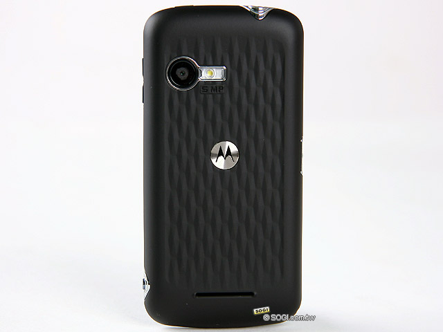 ▲MOTO QUENCH XT5 整體外觀跟之前一樣使用霧面皮革烤漆,可以減少指紋殘留,不過在背蓋的設計上使用了菱格波浪,增加了使用上的觸感。下方長條孔為喇叭孔,音樂及鈴聲輸出穿透力足夠。中間的銀色金屬 MOTO Logo,提升整體質感。