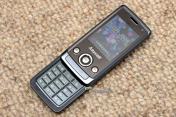 2.2 吋的大鏡面螢幕及紮實具有回饋感的金屬拋光按鍵,為 J808 的外觀第一印象,而其規格為中階等級,包含 WCDMA 網路、2.2 吋 TFT 螢幕、200 萬畫素相機、RDS FM 收音機、藍牙 A2DP、microSD 記憶卡擴充等。雖然質感依然很充足,但同樣的銀、黑雙色搭配,在三星的機海當中重複性太高,看膩指數爆增。