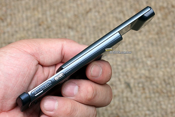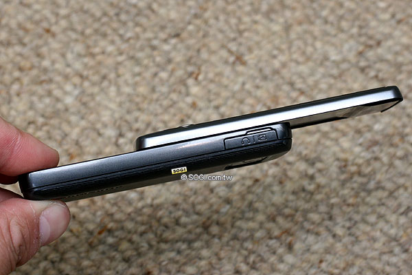 ▲ J808 的正面融合鏡面螢幕和金屬按鍵兩大經典設計