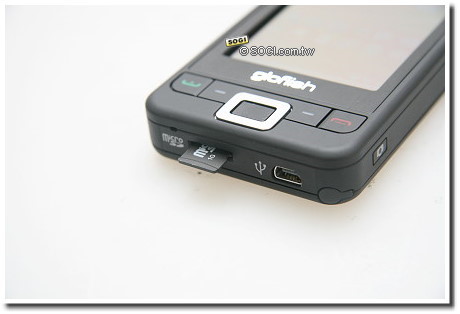 機底的部份,則是 microSD 記憶卡插槽及 USB 充電傳輸埠,值得一提的是,原本在 X500 隨機附贈的 512 MB 記憶卡,在 X500+ 也一併升級為 1 GB,提供使用者更大的容量應用。