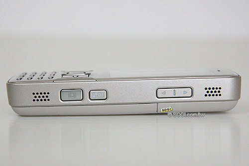 Nokia N82 機身右側,設計了上下兩道揚聲器,在揚聲器之間則是相機拍攝操作專區,以音質來講,此次 N82 真的表現得不錯,不僅立體,當開啟播放器的立體聲設定時,還可以達到 3D 環繞音效,最大聲也不太會有破音的情況產生。