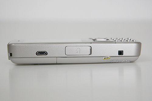 在機身左側,則是 Micro USB 傳輸介面、microSD 記憶卡擴充槽 ( 上市會贈送一張 2GB 記憶卡 ) 與電源充電孔。