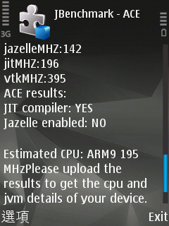 ARM 與 JBenchmark 合作開發的測試程式「ARM CPU Estimator(ACE)」,可測試手機的處理器與 Java 效能,以及 CPU 資訊以及圖表。測試的方法非常簡單,只要將 ACE 程式傳到手機或記憶卡當中,打開程式在手機上安裝即可。安裝完成後,打開 ACE 應用程式檔案並執行,即可就可以看到如 CPU Family、時脈與 Java 效能圖表等資訊。結果顯示,Nokia N82 屬於 ARM9 系列,執行時脈為 195 MHz,未支援 Jazelle 硬體 Java 加速。