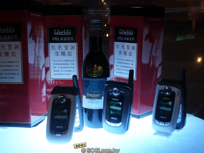 ASUS M303i 是華碩旗下最新力作,完美結合了輕薄體積、內外 26 萬色 TFT 螢幕、MP3 音樂、兩百萬畫素數位相機、語言學習、miniSD 記憶卡擴充等最強功能。 ASUS M303i 嗑 Party 音樂組,除了手機還包括 Fortant Merlot 楓藤梅洛紅酒 187 ML 乙瓶。Fortant 楓藤系列紅酒以 100 % 單品葡萄釀製而成,其中 Fortant Merlot 楓藤梅洛紅酒的酒質呈現紅紫色澤,氣味豐富香醇;味美的果實相隨著空氣而散發出清新的麝香,楓藤系列紅酒風行全球 80 餘國,不僅是各國際航空的座艙用酒,同時也是聖誕夜與朋友家人相聚的最佳飲用酒品。