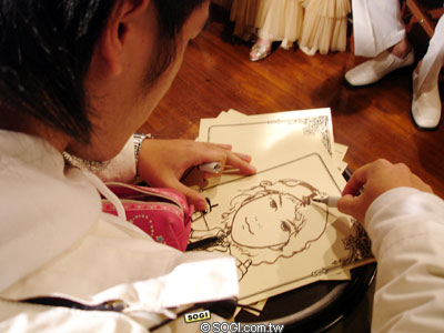 現場的街頭藝人能在 30 秒內,就能素描畫出 Q 版的畫像,兩人對於街頭藝人如此驚人的功力都感到嘖嘖稱奇!不僅是兩位貴賓,與會的賓客也都能請街頭藝人畫下個人像,並且可以免費帶回家。