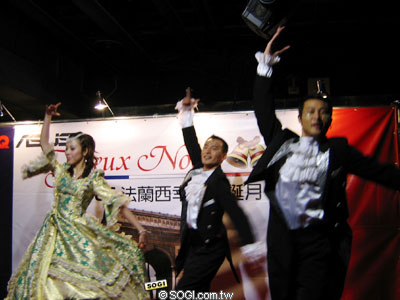 隨著圓舞曲的結束,與會的重要貴賓隨之出場,是當紅偶像劇惡作劇之吻的男女主角鄭元暢和林依晨。依晨身穿 CH Wedding 婚紗,元暢則是穿著芊翔男禮服,對於第一次以宮廷扮相參與活動的兩人,非常滿意如此的打扮穿著,尤其是古歐風的典雅味,是兩人最感到新鮮之處。