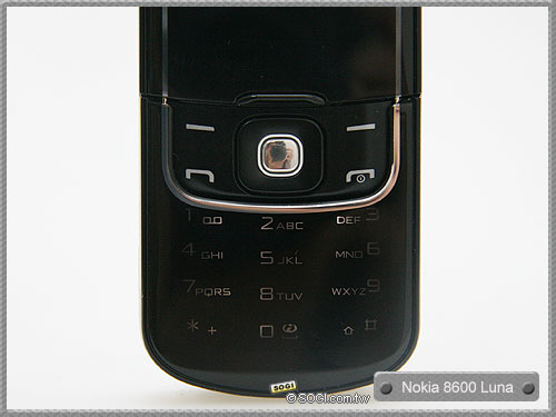 上圖是 Nokia 8600 Luna 半透明鍵盤蓋設計,最大的特色就是,當鍵盤光亮起時會直接透過半透明鍵盤蓋而顯現出來,玩家除了可在來電或簡訊時目睹到鍵盤光之外,亦可透過手機內建設定而達到宛如心跳呼吸般之頻率性忽隱忽亮。
