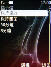 上圖是 Nokia 8600 Luna 的按鍵光閃爍設定方式,也就是說,除了來電或簡訊之外,如果您是個愛炫的玩家,亦可透過手機內建功能直接設定,只要將指示燈設定選項點選為保持開啟即可,不過這樣會比較耗電喔。