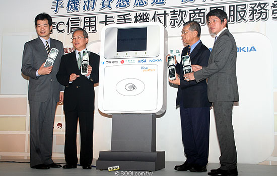 中華電信、中國信託、Visa 及諾基亞四大業界龍頭共同推廣的 NFC 交易技術,於今天正式宣佈首度攜手,推出 NFC 信用卡手機付款商用服務,並限量邀請尊爵客戶率先享受這項創新服務。即日起,只要同時為中華電信行動電話客戶及中華電信 Call Call 聯名卡卡友,即有機會受邀辦理 Nokia 6131i 手機並申辦 NFC 感應式信用卡手機服務,除可至全台近 3,000 家 Visa payWave 商店體驗手機行動消費,還可透過與網路服務的整合,享受包括:感應式信用卡功能下載、店家電子優惠券下載使用、智慧型海報感應連網下載優惠資訊等 NFC 服務。 不過,初期僅提供 500 款手機讓尊爵用戶優先購買。