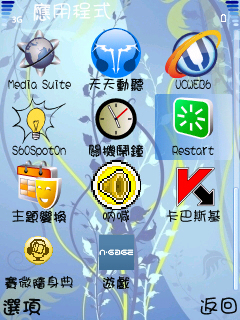 扣掉佈景主題與字型,上圖是我所爬文看到且是自己需要的一些程式,分別是 Y-Brower 文件管理器、來電警衛、天天動聽、週期鬧鐘、Restart、主題變換、遊戲吶喊、掃毒工具卡巴斯基、塞微隨身字典與 N-Gage 正式版。