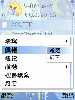 文件管理器 Y-Browser v0.88 ( 2 ) 好像一套硬碟管理工具,像一般 PC 般的分好幾個硬碟槽,方便玩家管理檔案,像上段所提到的字型美化更改就滿需要這套軟體來搭配了。而除了此概念之外,它似乎還有其他功能。