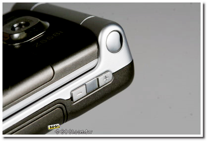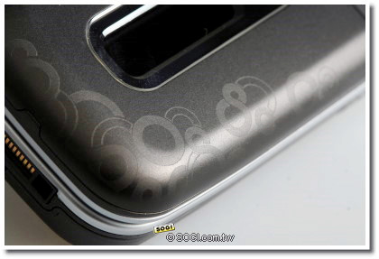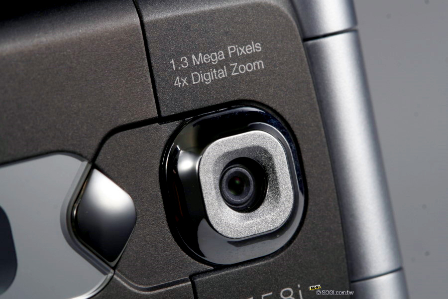 刻意凸起的相機鏡頭,周圍以金屬噴砂的方式設計,略為粗糙的手感,替手機帶來另一種感覺,讓人想不注意都難。鏡頭外還以黑色鏡面包覆,層層而外的色系交錯,締造出不同的視覺效果。不過,除了 130 萬畫素相機之外,旁邊並沒有設置其他輔助的拍攝工具,像是閃光燈、自拍鏡等皆不具備。